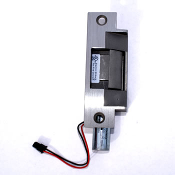 Electric strikes have few parts, work with many existing latches, and only draw power when someone hits the buzzer.